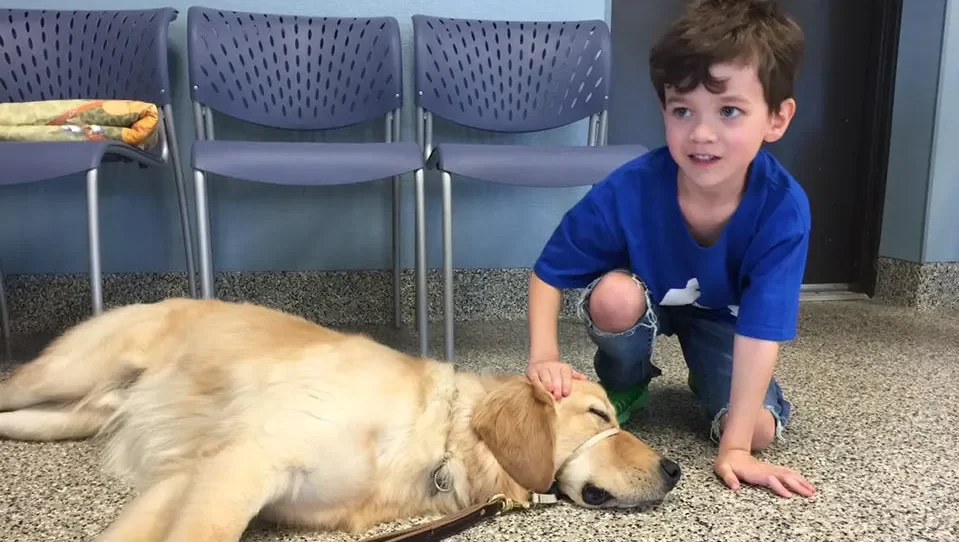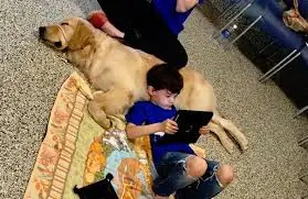 Madre se emociona al ver a su hijo autista abrazar por primera vez a un perro de asistencia