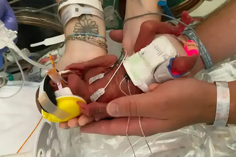 Gabriel nació con un grado de prematuridad extrema, sus pulmones todavía no estaban completamente formados. Los especialistas advirtieron a la familia de las reducidas posibilidades de supervivencia y llegaron a prepararles para lo peor. “Pensé que no lo conocería con vida”, recordó Caroline en una entrevista con People. Sin embargo, contra todo pronóstico, el bebé superó la primera noche, sorprendiendo a todo el equipo médico.